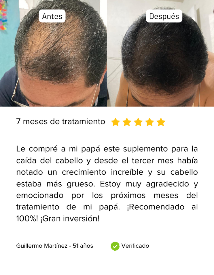 Después de 6 meses, es recomendable seguir tomando el suplemento para mantenimiento y crecimiento (6-12 meses), si se deja de consumir es posible que la pérdida de cabello se reanude.